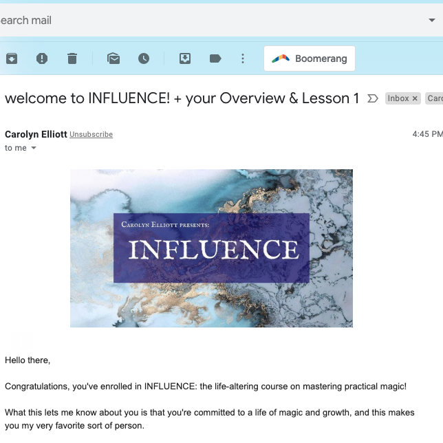 I created INFLUENCE: the life-altering course on mastering practical magic to teach people how to do exactly this – to confidently generate stunning results in their lives…
